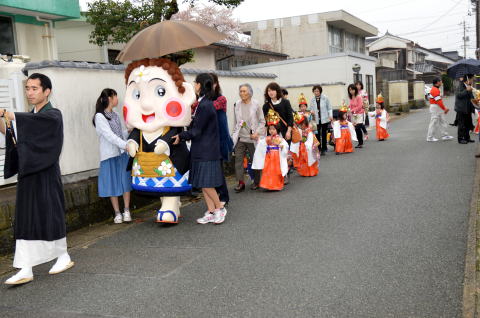 津守町報恩寺から田町商店街まで、稚児行列をおこないました。