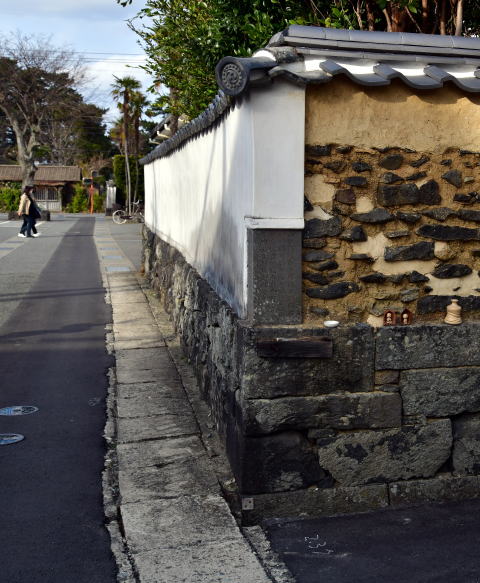 「四ツ屋橋辻」の白壁に碑石