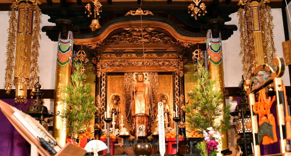 中央に釈迦 文殊・普賢を脇侍とする
